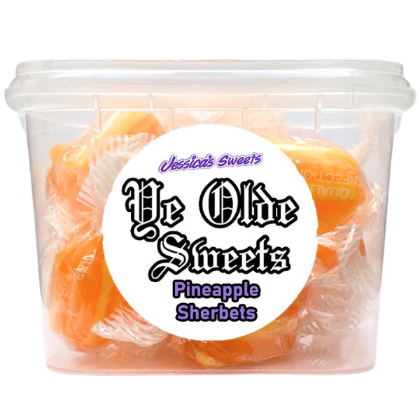 Indulge in the delicious and refreshing taste of Jessica's Sweets Ye Olde Sweets Pineapple Sherbets! Take a trip to the past with every bite and treat yourself to a truly nostalgic treat.